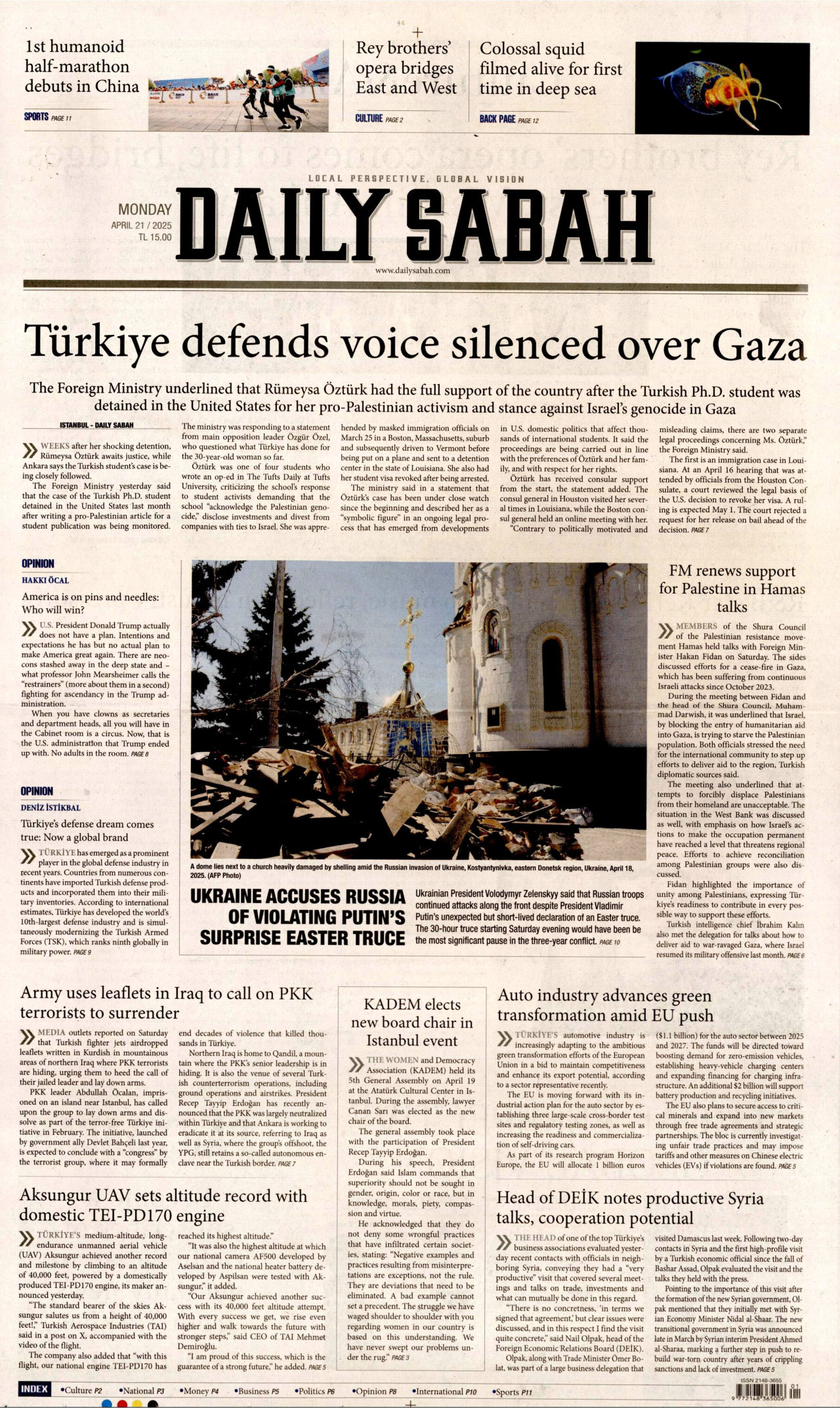 DAİLY SABAH Gazetesi 20 Nisan 2025, Pazar Günü Manşeti