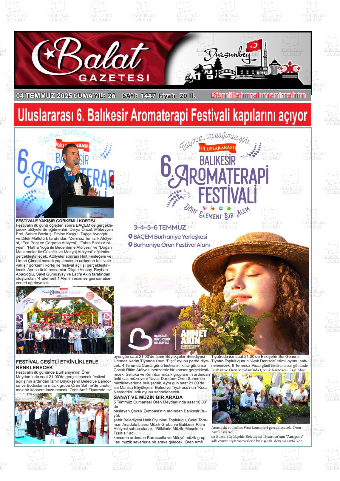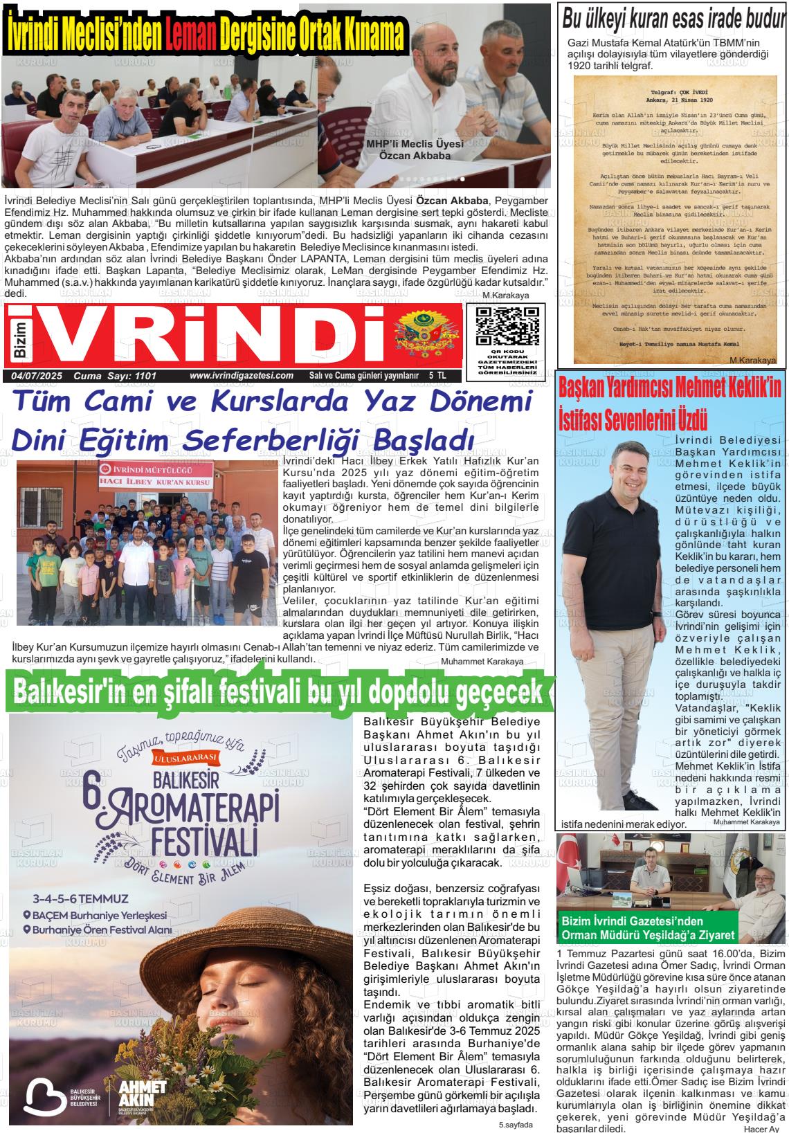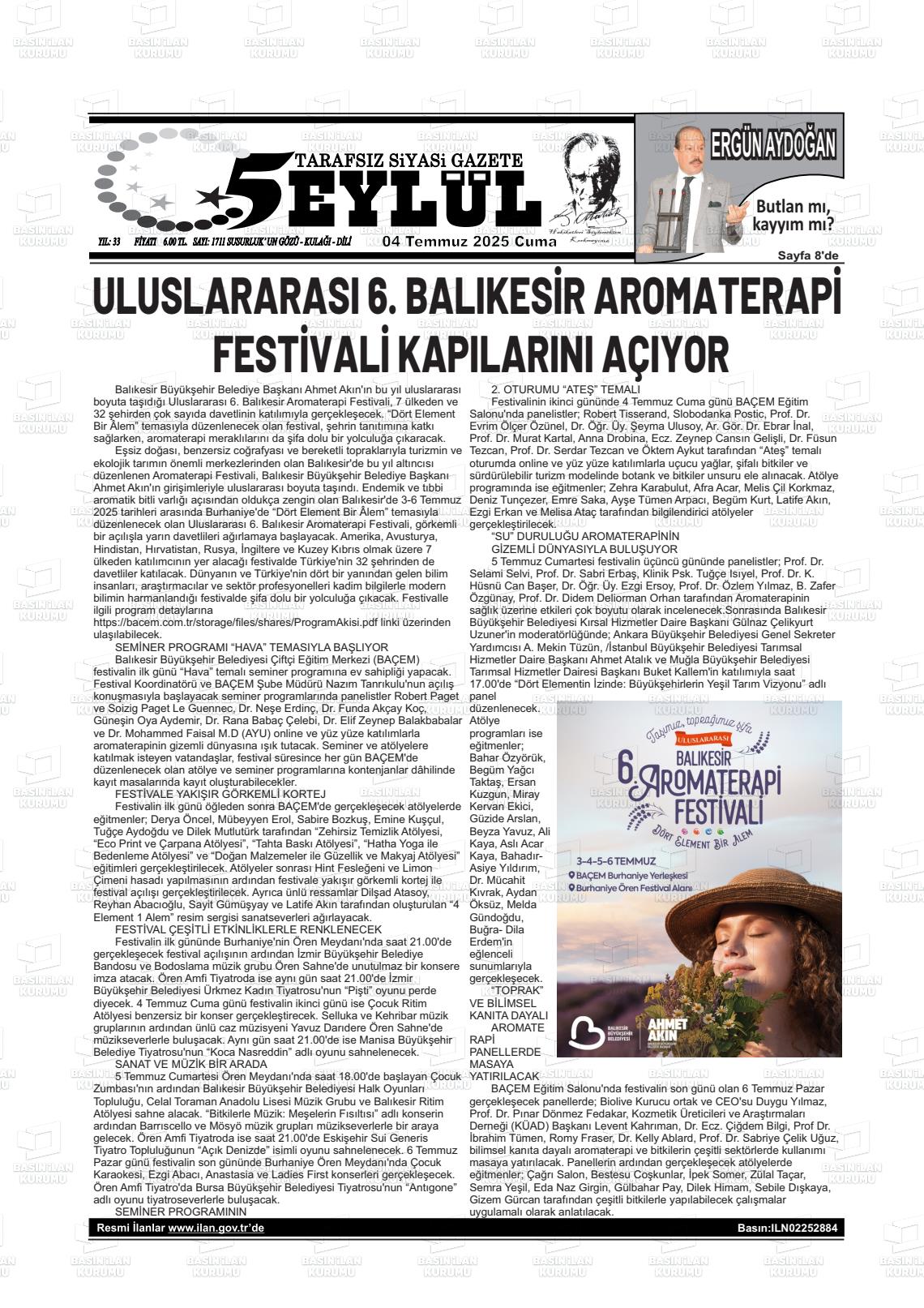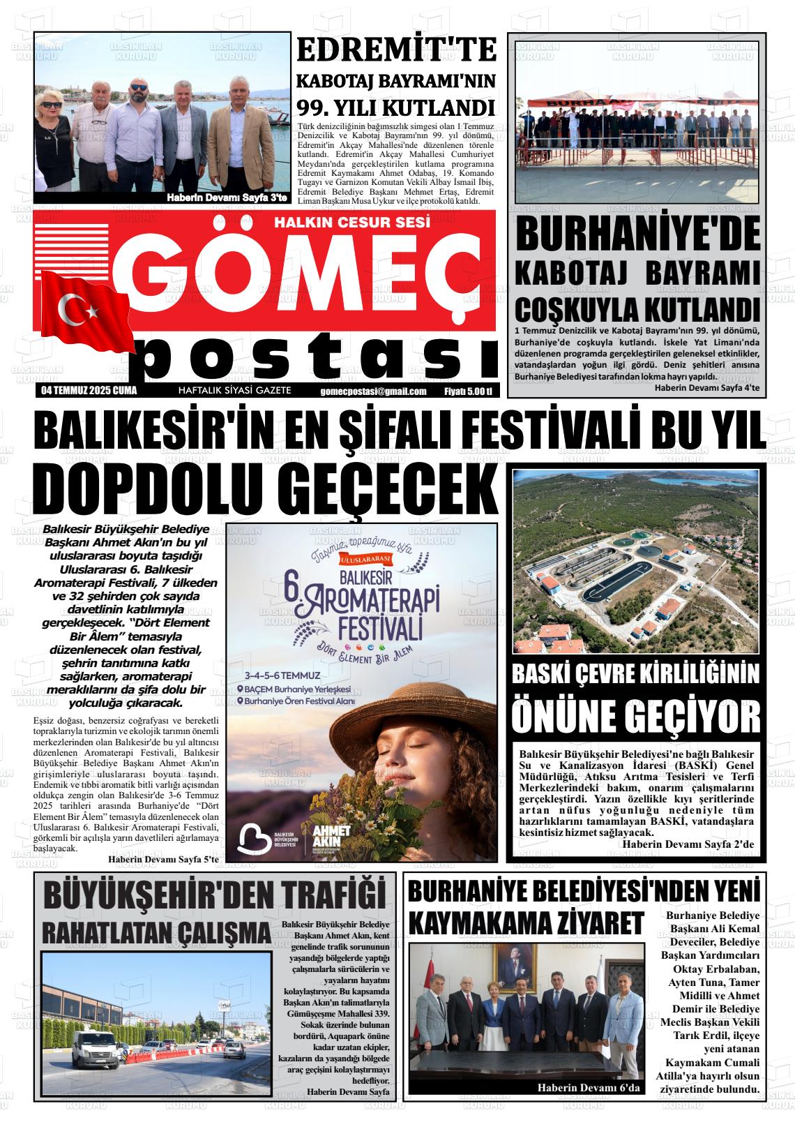 Balıkesİr Yerel Gazeteleri 07 October 2025, Tuesday Günü Manşeti