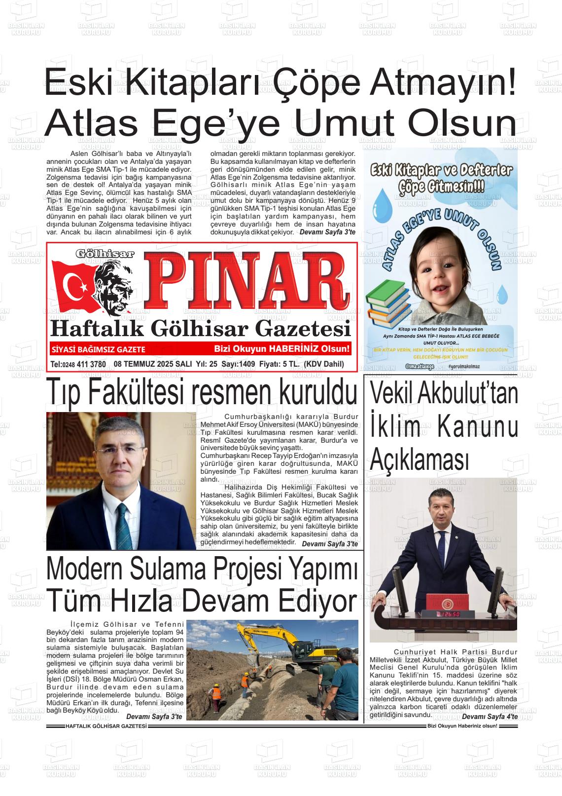 Burdur Yerel Gazeteleri 15 Aralık 2025, Pazartesi Günü Manşeti