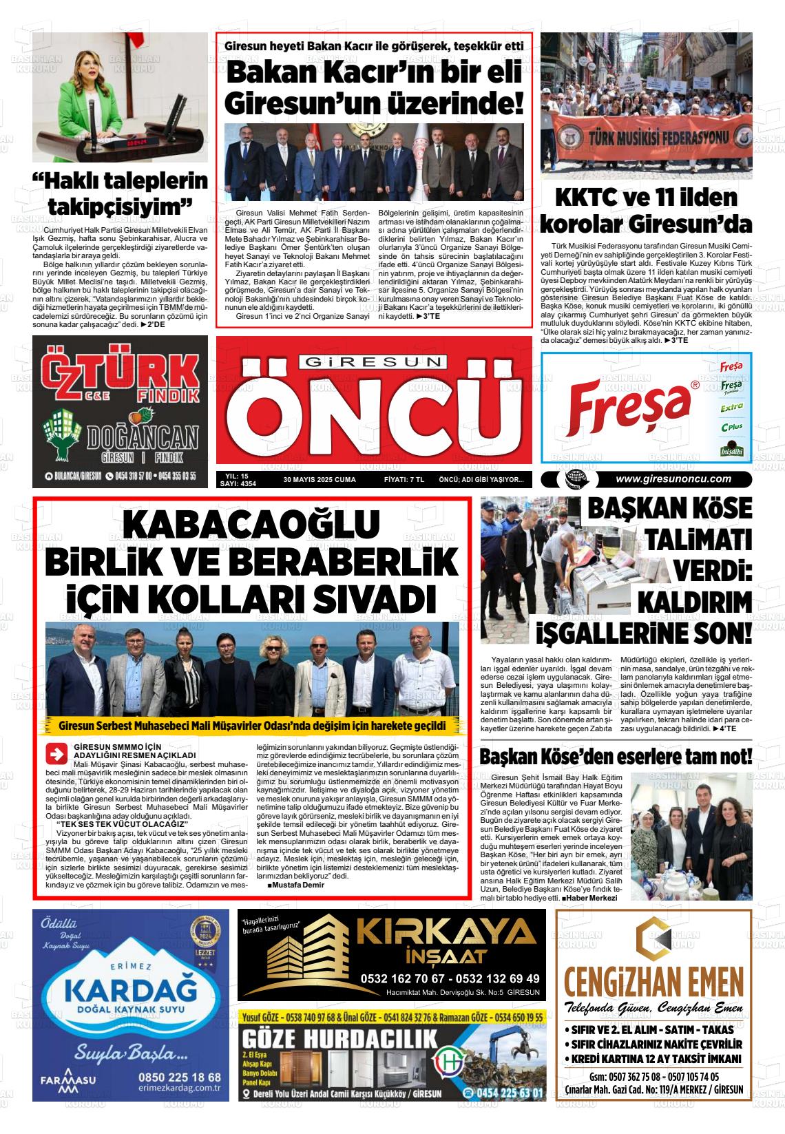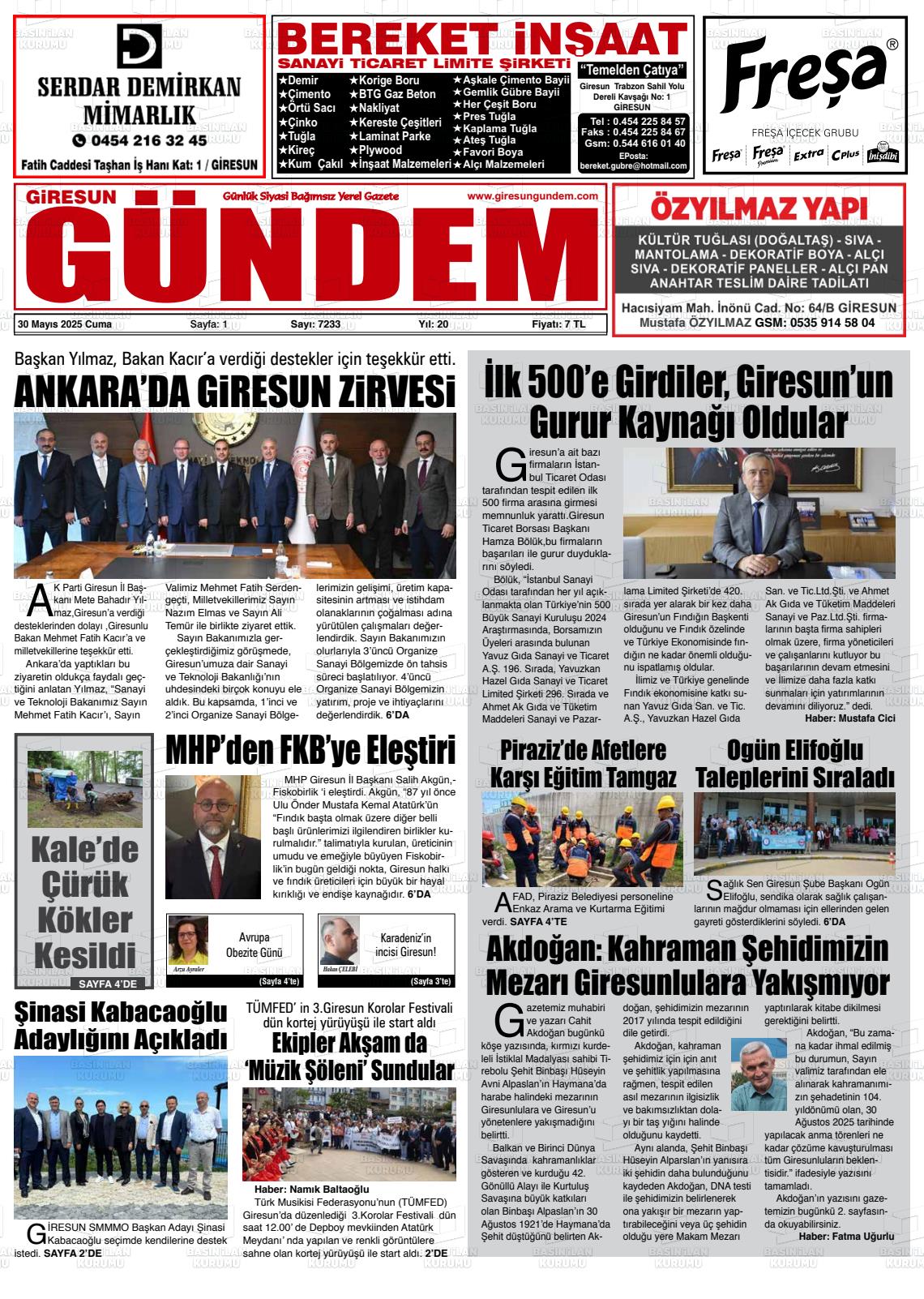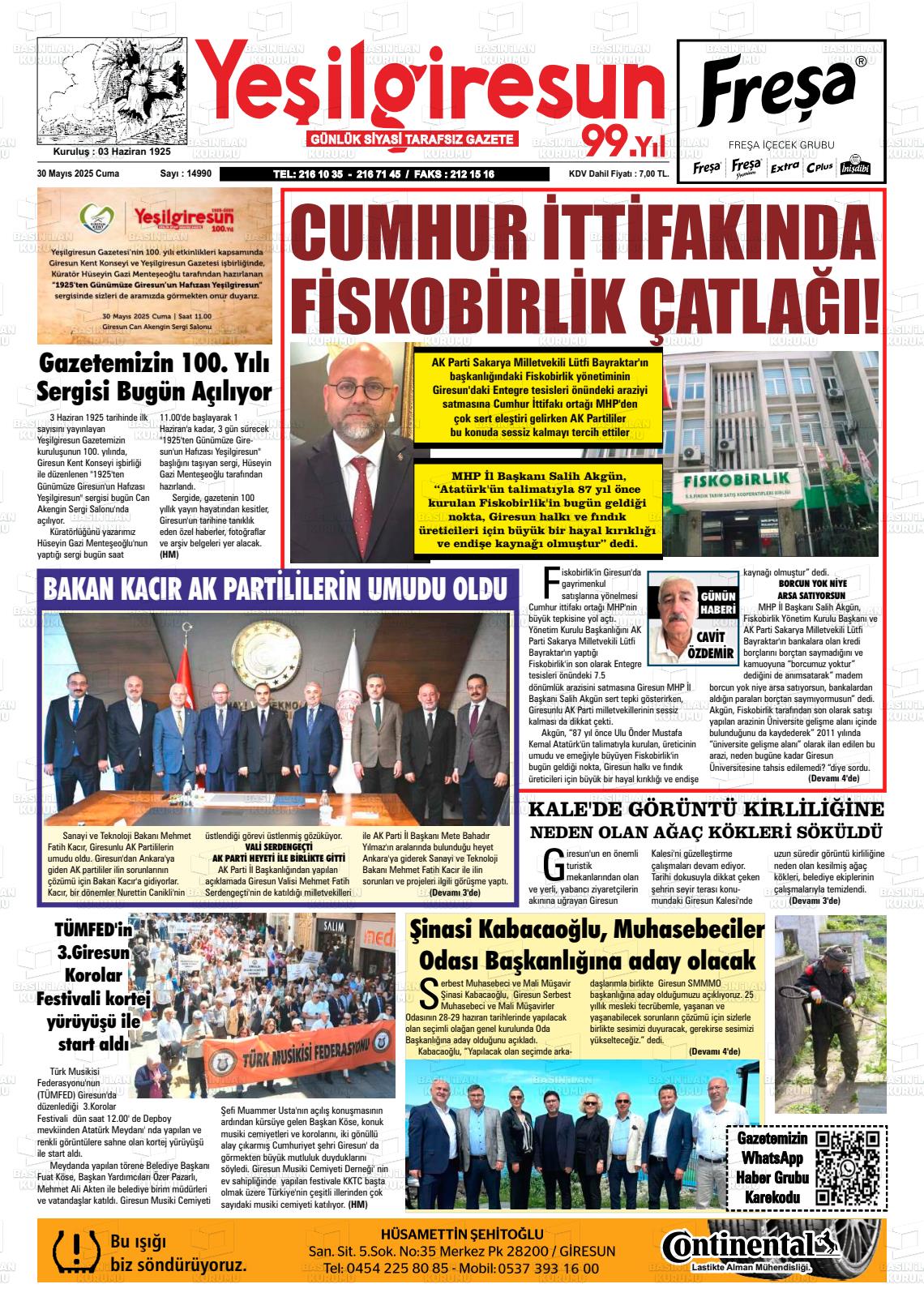 Gİresun Yerel Gazeteleri 30 Ocak 2026, Cuma Günü Manşeti