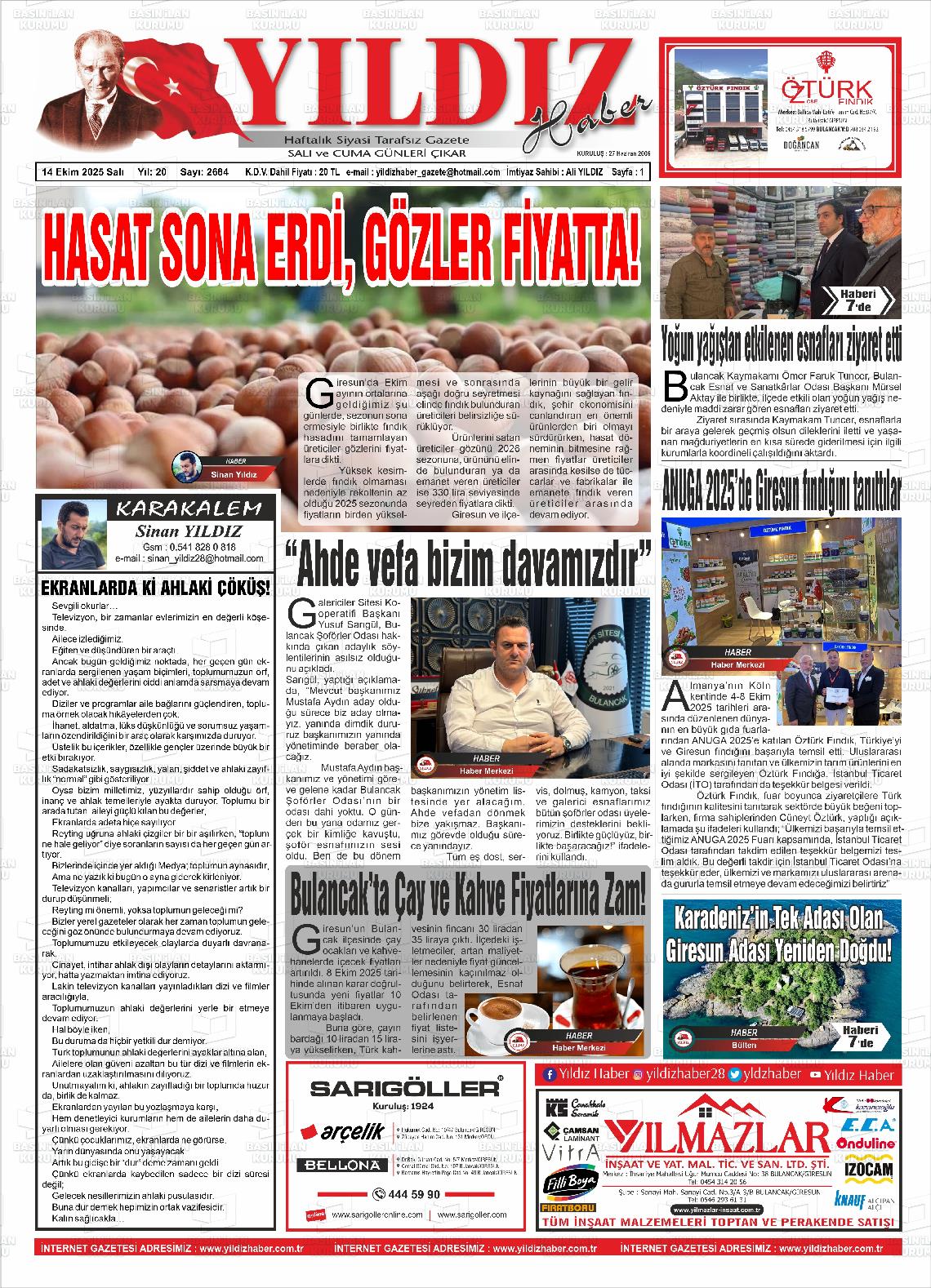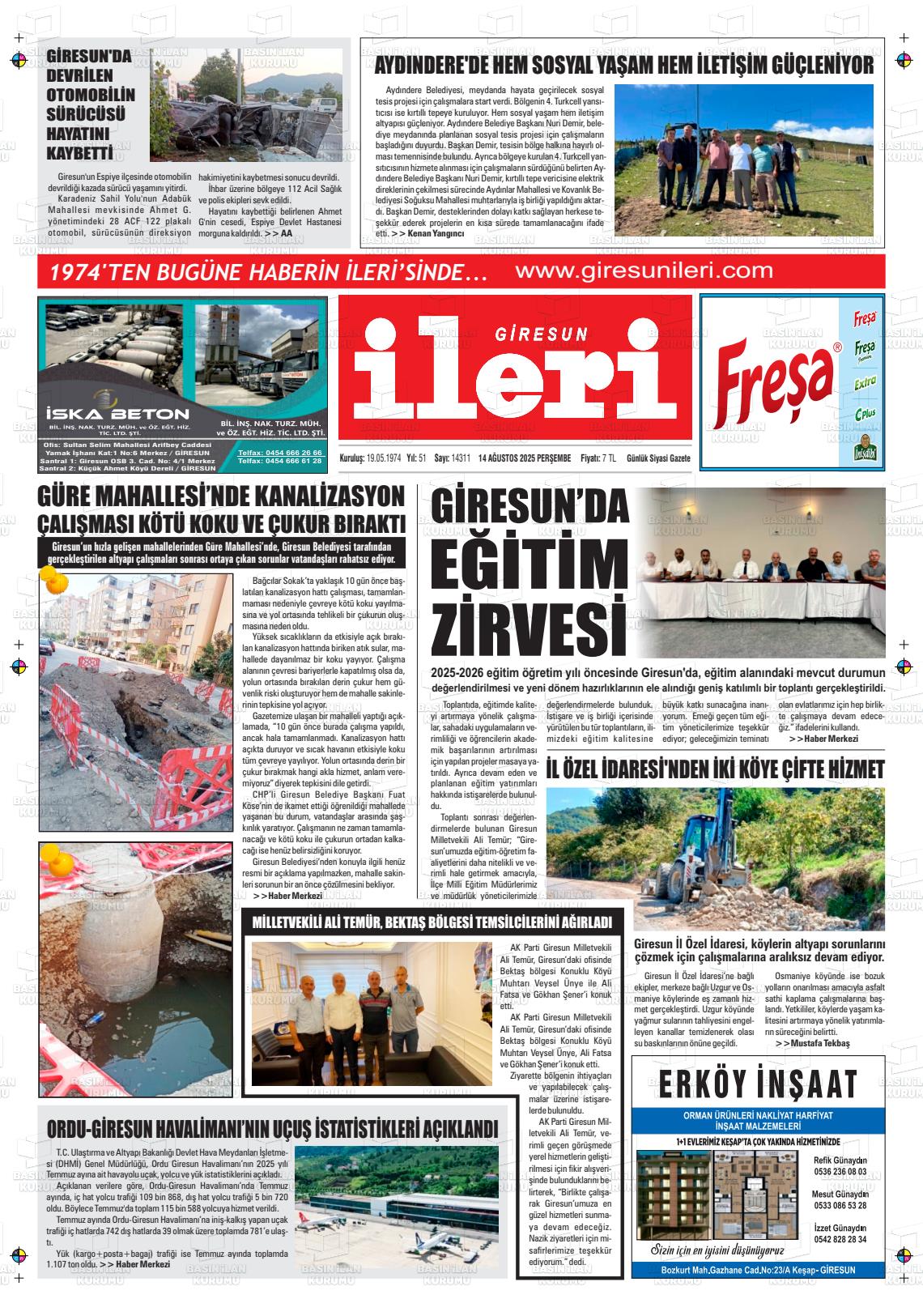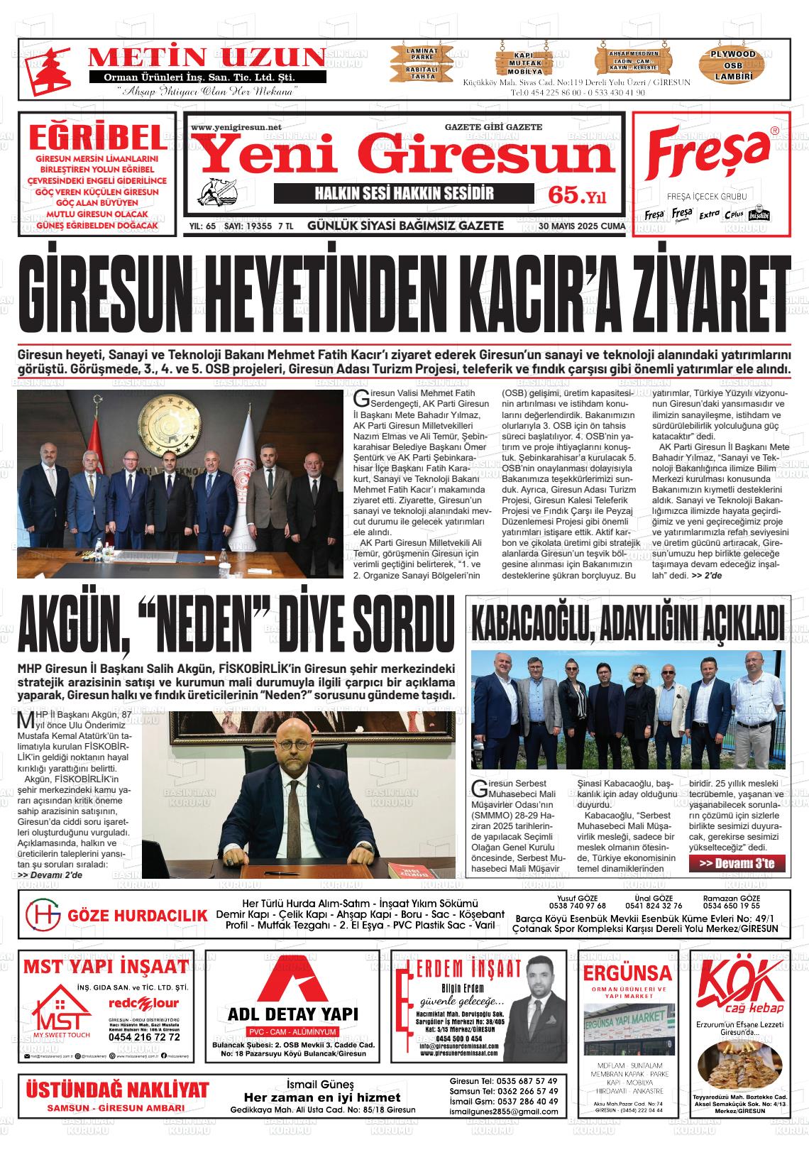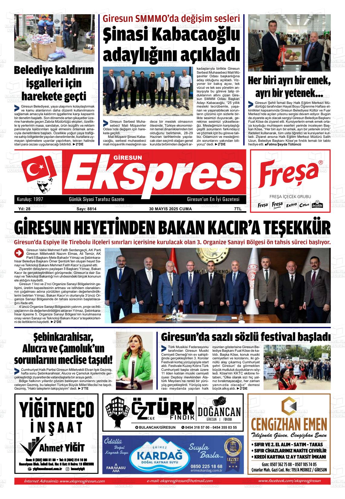 Gİresun Yerel Gazeteleri 30 Ocak 2026, Cuma Günü Manşeti