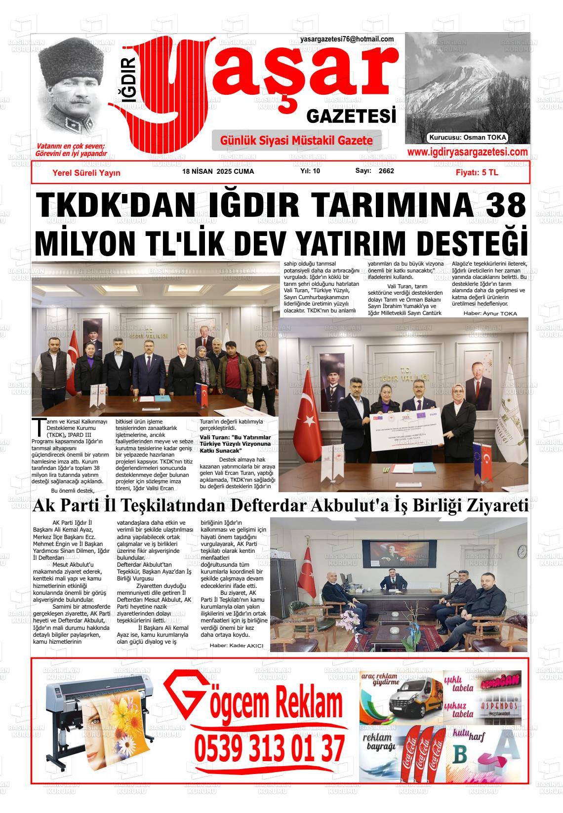 Iğdır Yerel Gazeteleri 10 Ekim 2025, Cuma Günü Manşeti