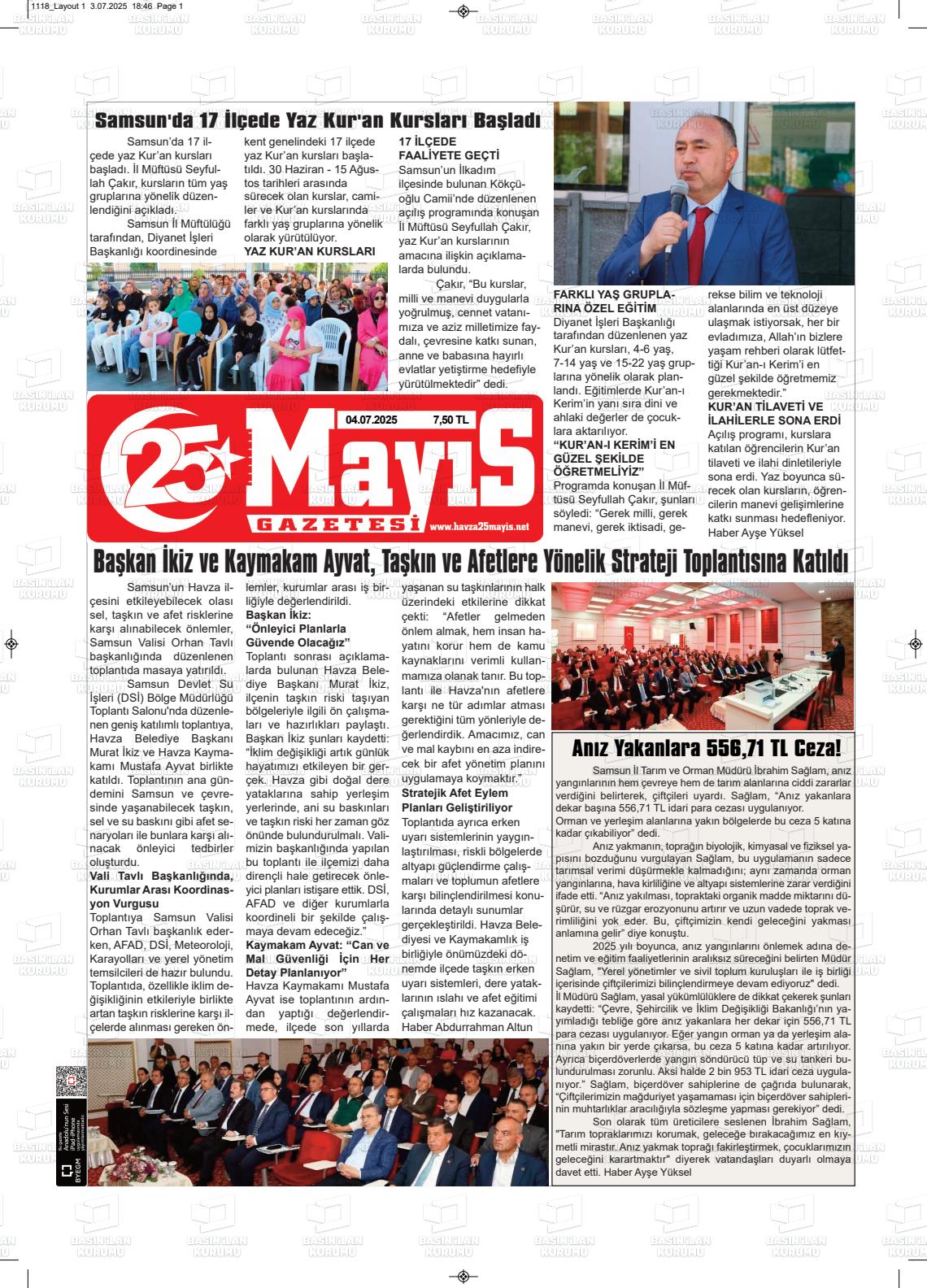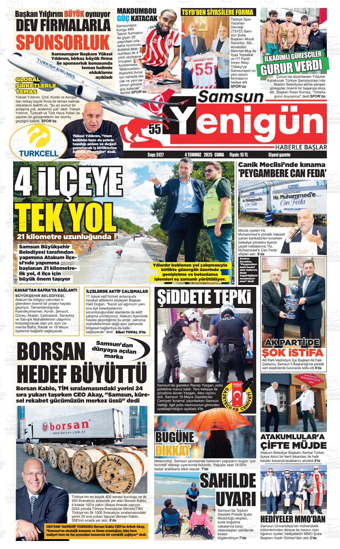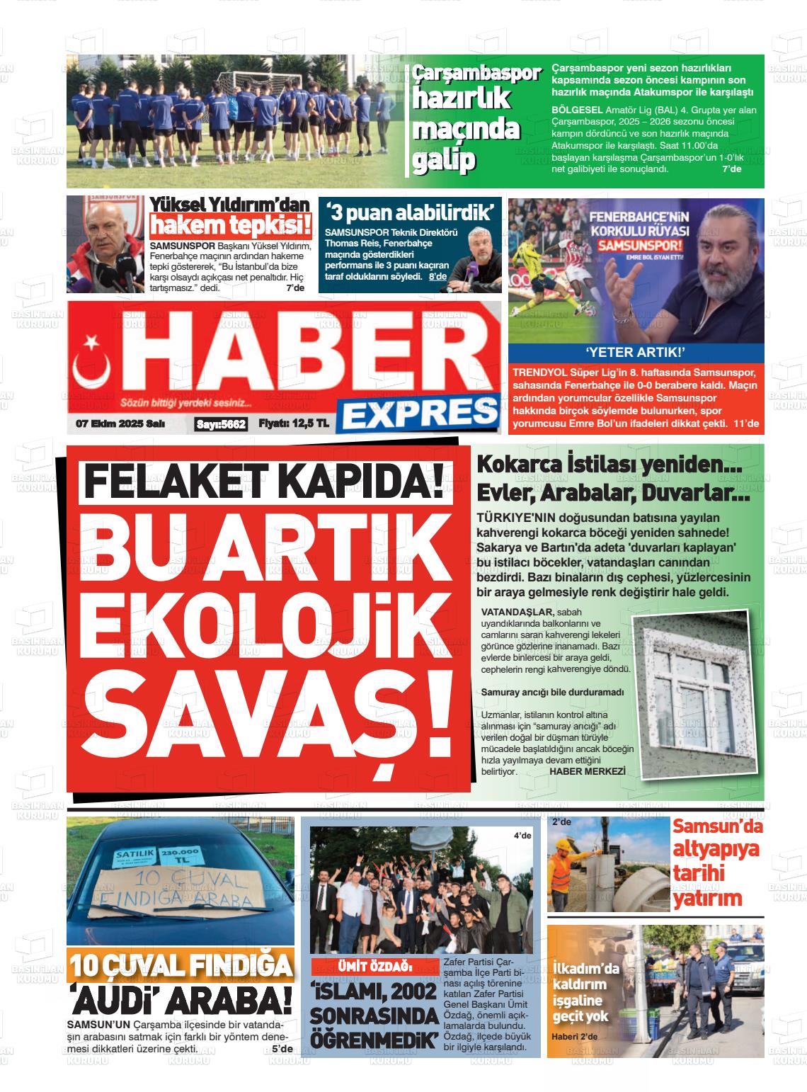 Samsun Yerel Gazeteleri 07 October 2025, Tuesday Günü Manşeti